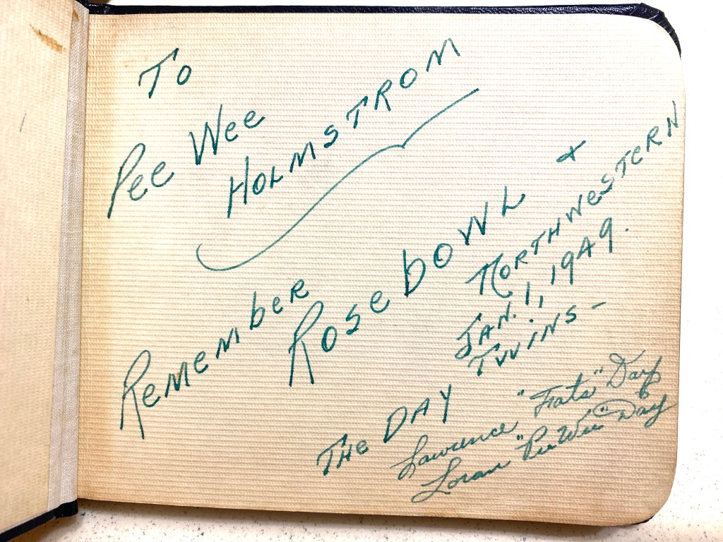 We’re up in the 20th row of metal bleachers ($336 for three seats, parking, and one program). The garbage bags we brought have come in handy, and we place them across the soaked seat. Behind us, a young girl is on the lookout for her dad, who plays the clarinet in one of the marching bands. Directly in front of us is a couple sharing our love for the Indiana Hoosiers, playing in the Rose Bowl football game in just a few hours for the first time since 1968. How wonderfully strange it is to travel across the country only to be surrounded by people connected to our own Midwest hometown and team.