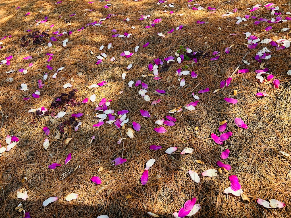 Above us, a large squawking flock of Pasadena parrots flies by, a welcome distraction from the rain. This flock is much higher in number than the flock that used to fly above our San Francisco cottage.