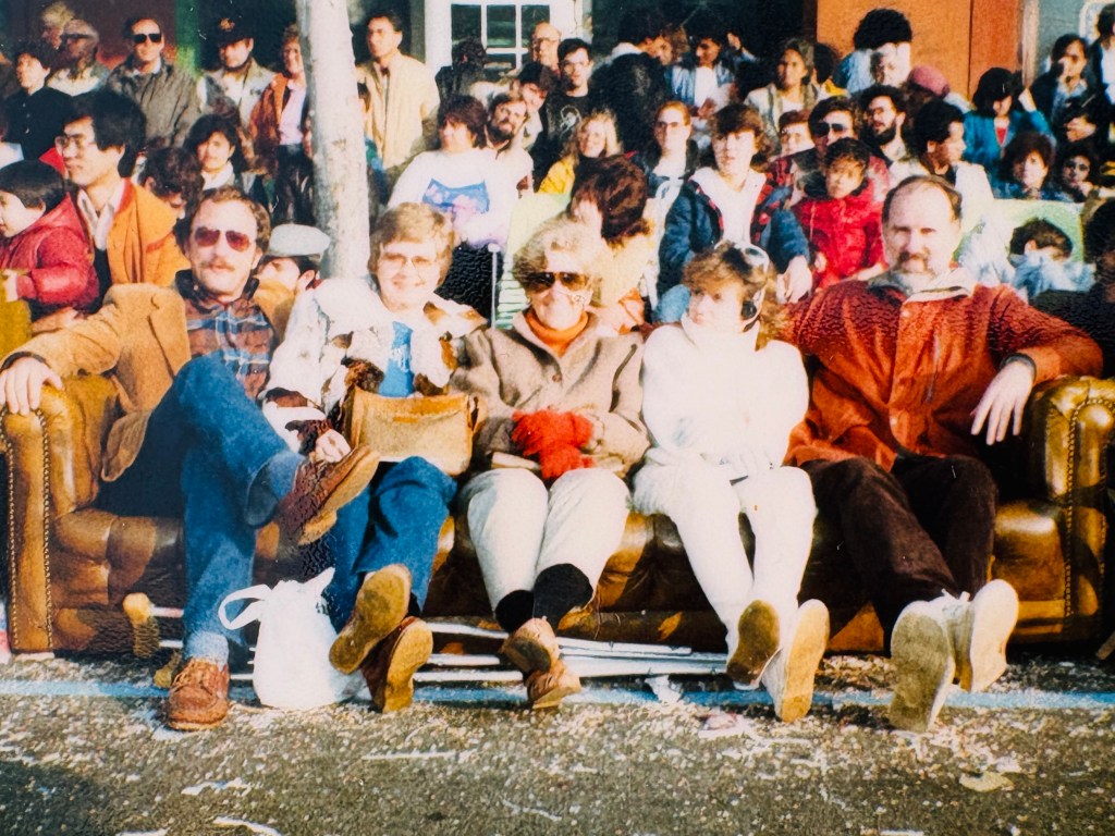 It’s early enough that we easily find a parking space, but incredibly, many of the prime viewing spots along the parade route have already been claimed. My parents good-naturedly refuse to pay for “overpriced bleacher seats.” As our group stands on the curb discussing what to do, a truck suddenly pulls up next to us, and a burly guy leans out of the driver’s side window. “Hey, we got couches for rent,” he yells. “We’ll drop it off on the street right here and pick it up at the end of the parade. Thirty bucks!” The grownups look at each other, unsure about the offer. I quickly pipe up, “Oh please please please, that’ll be so fun!” Everyone agrees, and the five of us soon find ourselves sitting thigh-to-thigh on a fake leather couch, unexpectedly granted a rather cushy front-row seat to the 1986 Tournament of Roses Parade.