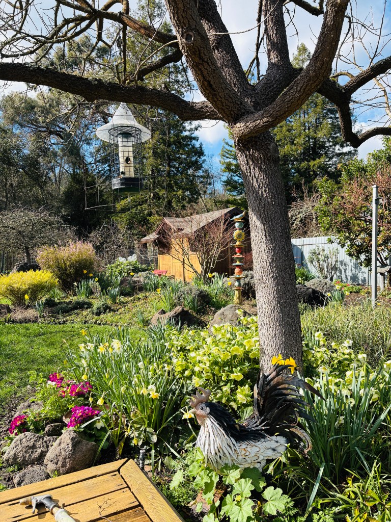 Still, I know no other human who is more fiercely connected to and defined by her home, garden, and surrounding land than Nancy is, and Jennifer has given Nancy the gift of staying in her home, of “aging in place” with exquisite 24-hour caregiving. And even though two terrifyingly destructive fires in recent years have burned many surrounding houses to the ground, Nancy’s still stands. Despite exhaustion and an unknown future, so do mother and daughter.