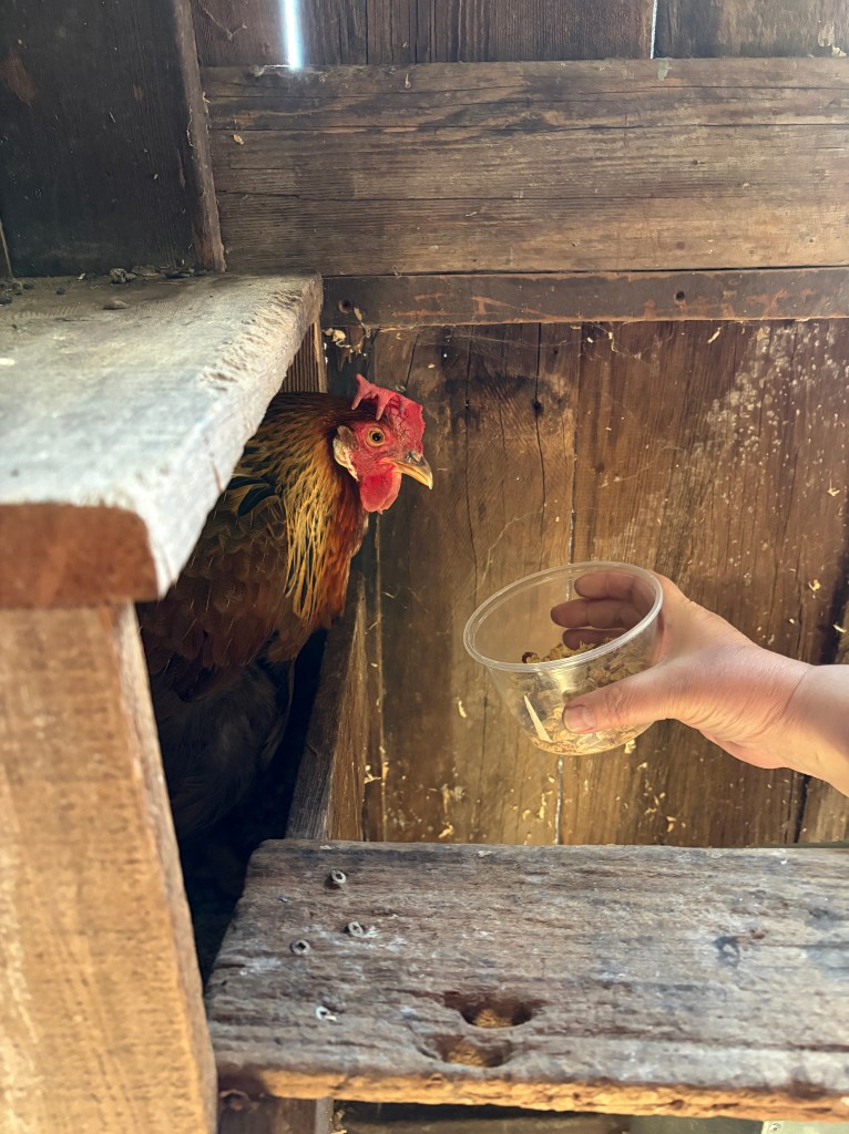 Nancy and Jennifer have learned to cultivate small joys – enjoying fresh and preserved food from the garden, arranging flowers from the beds outside, savoring ice cream and fresh bread from a local bakery, watching home improvement shows, reading out loud, and tending to their pet (the only remaining chicken from the once robust flock in the garden), an 11-year-old miracle chicken named Sweet Pea who prefers her granola handfed. This year, Nancy and Jen decided that they enjoyed the lights of the Christmas tree so much it would stay up into February.