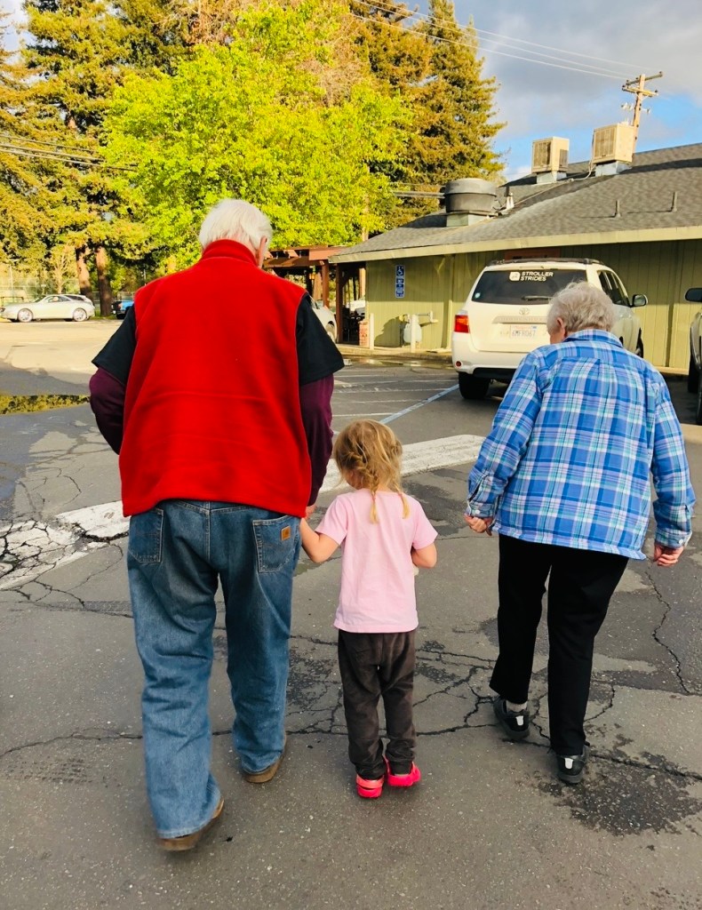 Bob and Nancy, walking into the future with my daughter.
